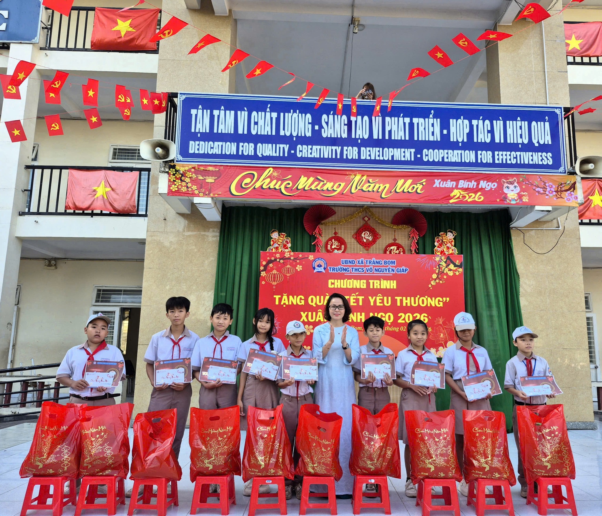 Mùa xuân Bính Ngọ 2026 tại Trảng Bom không chỉ hiện hữu trên những cành mai, nhành đào hay những bộ áo dài rực rỡ. Nó hiện hữu trong ánh mắt tự tin của những học sinh đang nuôi dưỡng ước mơ, trong những chiếc bánh chưng vuông vức do chính tay các em gói, và trong cả sự sẻ chia ấm áp giữa người với người. Đó là một không gian Tết kết tinh giá trị truyền thống, nhưng cũng là nơi chắp cánh cho những ước mơ tuổi thơ bay xa. Với nền tảng văn hóa vững chắc ấy, thầy và trò xã Trảng Bom hoàn toàn có quyền tin tưởng vào một năm mới với nhiều thắng lợi mới, xây dựng những "mái trường hạnh phúc" – nơi truyền thống luôn giao hòa cùng khát vọng tương lai.
