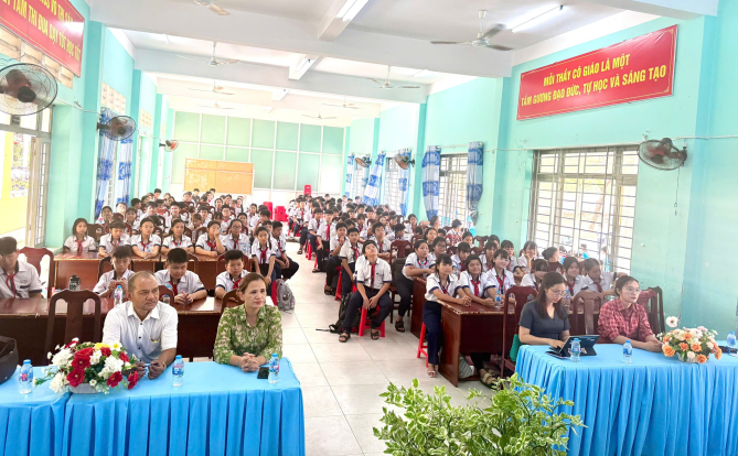 Báo cáo viên Sở Y tế tuyên truyền về phòng, chống tai nạn thương tích và xâm hại trẻ em tại Trường THCS Võ Thị Sáu