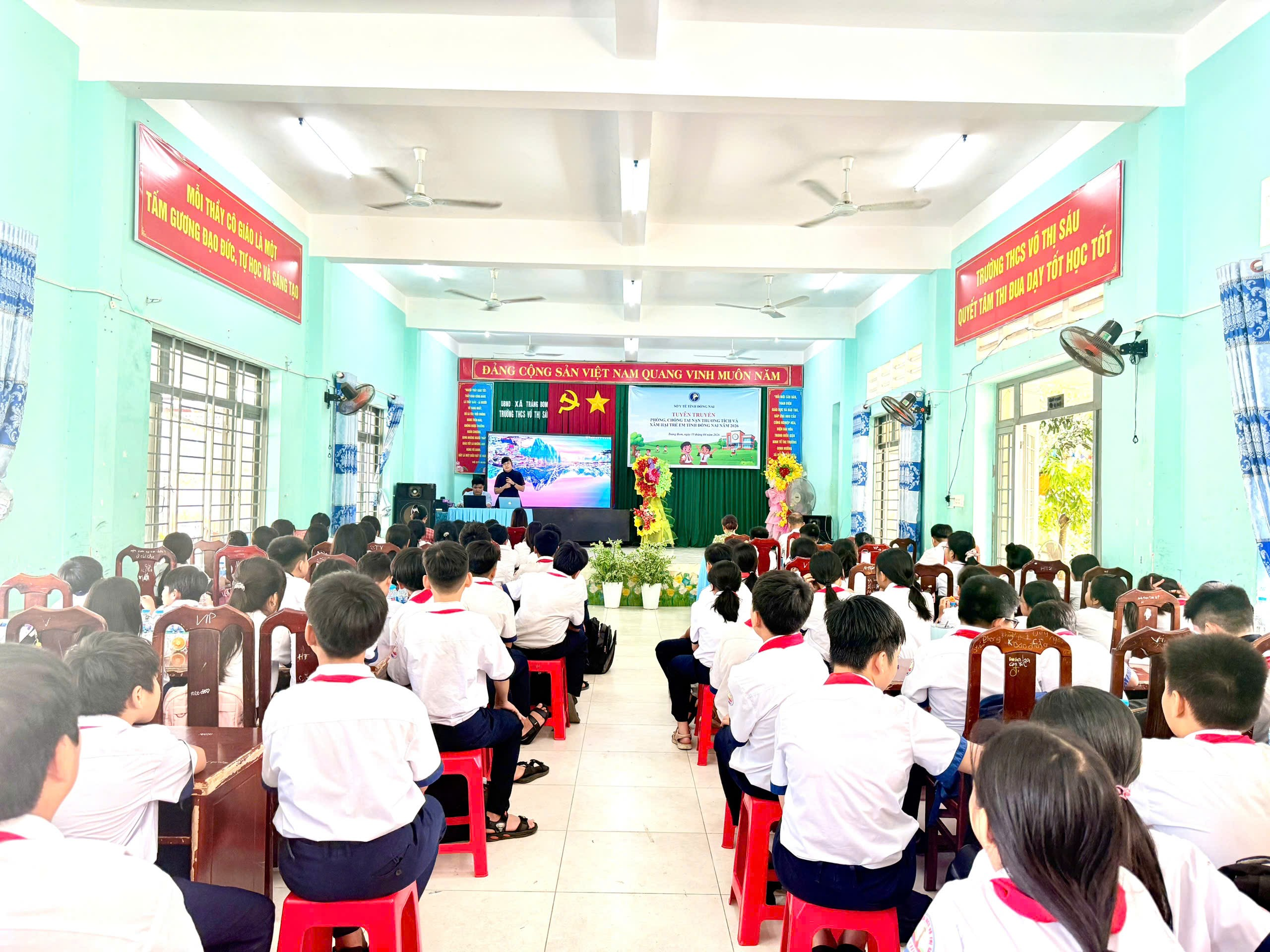 Toàn cảnh buổi tuyên truyền về phòng, chống tai nạn thương tích và xâm hại trẻ em tại Trường THCS