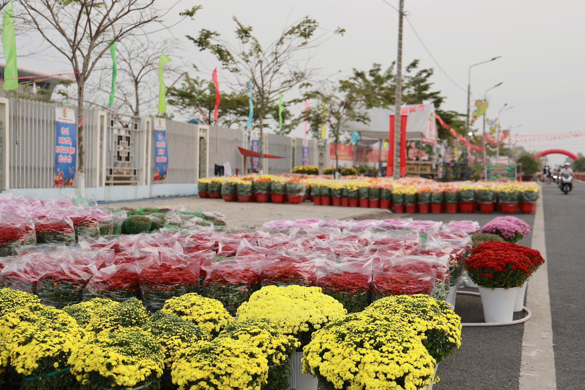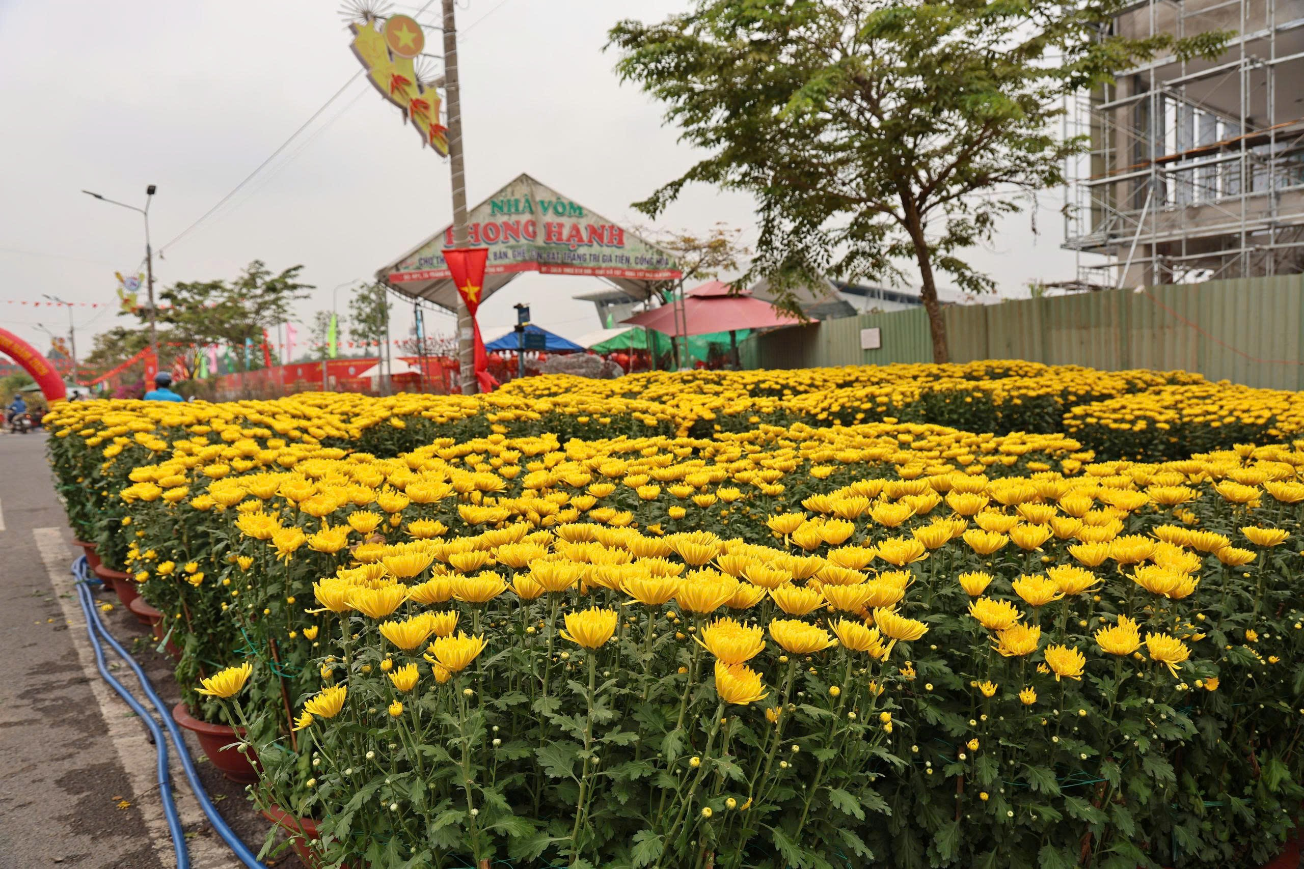 Nếu mai, đào là linh hồn của Tết thì các loại cúc chính là "nền nhạc" vui tươi cho hội hoa xuân. Cúc Đại Đóa bông to, vàng rực, cánh hoa vươn dài đầy sức sống, tượng trưng cho sự trường thọ và uy nghi. Cúc Mâm Xôinhững chậu hoa tròn đầy như mâm xôi vàng, nở rộ che kín cả lá. Biểu tượng cho sự đoàn viên, gắn kết gia đình.Sự xuất hiện của hàng ngàn chậu cúc được xếp thành những con đường hoa dài hun hút đã tạo nên một thảm vàng rực rỡ, làm sáng bừng cả không gian trung tâm xã.