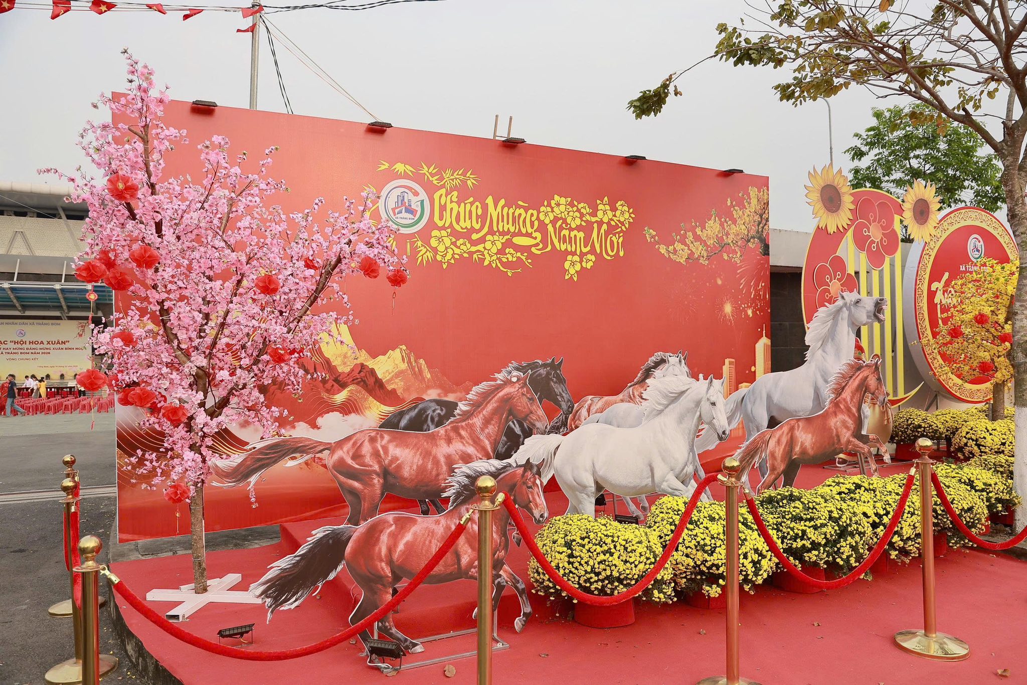Điểm nhấn khi bước chân vào cổng hội hoa chính là sự giao thoa đặc biệt giữa hai biểu tượng Tết Việt. Những gốc mai vàng Nam Bộ chiếm lĩnh vị thế chủ đạo. Năm nay, nhờ thời tiết thuận lợi, mai nở rất đúng độ. Có những gốc mai cổ thụ hàng chục năm tuổi, dáng "trực", dáng "thác đổ" được các nhà vườn từ miền Tây và địa phương chăm chút tỉ mỉ. Mỗi cánh hoa năm cánh, mười cánh tròn trịa như gửi gắm lời chúc về một năm mới sung túc, tài lộc. Hội hoa năm nay có sự xuất hiện của các giống đào phai, đào bích từ phía Bắc chuyển vào. Sắc hồng dịu dàng của hoa đào hòa quyện giữa nắng phương Nam tạo nên một vẻ đẹp thanh tao, kiêu kỳ, thu hút rất đông các bạn trẻ dừng chân chụp ảnh kỷ niệm.