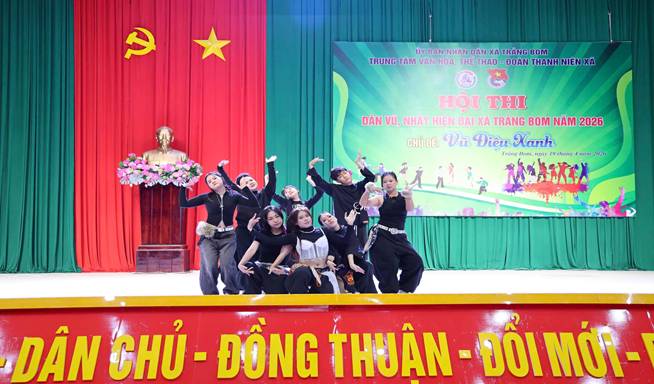 Ngày 19/4, Trung tâm Văn hóa, Thể thao phối hợp cùng Đoàn Thanh niên xã Trảng Bom tổ chức Hội thi Dân vũ và Nhảy hiện đại năm 2026 với chủ đề “Vũ điệu Xanh”. Đây là hoạt động chào mừng thành công cuộc bầu cử đại biểu Quốc hội khoá XVI và đại biểu HĐND các cấp nhiệm kỳ 2026- 2031; hướng tới chào mừng kỷ niệm 51 năm Ngày giải phóng miền Nam, thống nhất đất nước (30/4) và Quốc tế lao động (1/5) và chào mừng xã Trảng Bom trở phường.