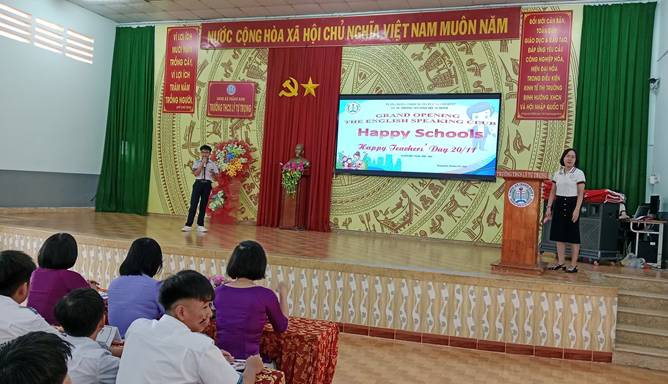 Một trong những điểm nhấn tạo nên sự chuyển biến tích cực tại đây chính là các hoạt động ngoại khóa và Câu lạc bộ (CLB) tiếng Anh. Trong năm học 2025-2026, hàng loạt chương trình mang đậm bản sắc văn hóa Việt - Anh đã được tổ chức thành công như "Happy Tet – Happy English" hay "Happy Schools". Tại các sân chơi này, học sinh không chỉ đơn thuần là người tham gia mà còn là những người điều hành, thuyết trình và biểu diễn bằng tiếng Anh. Hình ảnh các em tự tin trình diễn thời trang tái chế hay thảo luận về lịch sử, lòng yêu nước với chủ đề “Lòng yêu nước và tự hào dân tộc - Patriotism and National Pride" đã minh chứng cho hiệu quả của việc đưa tiếng Anh vào thực tiễn.
