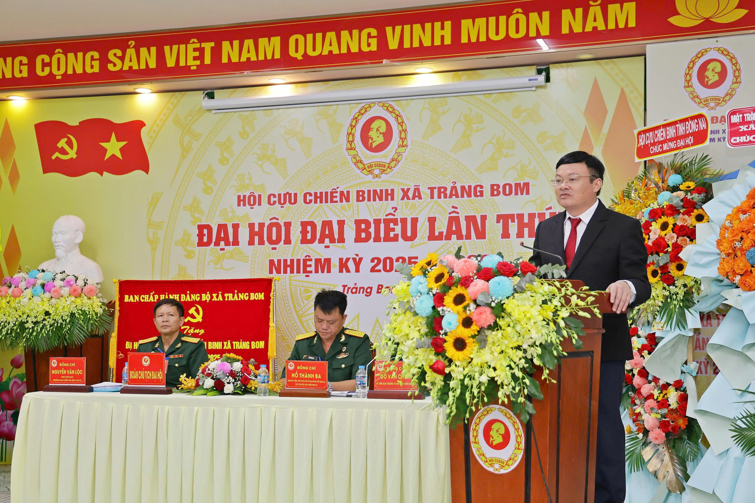 Đại hội vinh dự được đón tiếp các đồng chí Nguyễn Văn Lợi - Ủy viên Ban Thường vụ, Phó Ban Công tác CCB tỉnh Đồng Nai; đồng chí Đặng Doãn Thành - Bí thư Đảng ủy - Chủ tịch Hội đồng nhân dân xã Trảng Bom; đồng chí Chu Thị Mây - Phó Bí thư Thường trực Đảng ủy xã Trảng Bom; đồng chí Lê Ngọc Tiên - Phó Bí thư Đảng ủy - Chủ tịch Ủy ban nhân dân xã Trảng Bom; đồng chí Trần Thị Hồng Thảo - Ủy viên Ban Thường vụ Đảng ủy - Chủ tịch Ủy ban Mặt trận Tổ quốc Việt Nam xã Trảng Bom; cùng các đồng chí trong Ban Thường vụ, Ban Chấp hành Đảng ủy xã; các đồng chí lãnh đạo đại diện các phòng, ban, ngành đoàn thể xã; các đồng chí nguyên là lãnh đạo Hội CCB huyện và Hội CCB xã qua các thời kỳ, các đồng chí là lãnh đạo Hội CCB các xã trước khi sáp nhập và 116 đại biểu chính thức, đại diện cho 940 hội viên trong toàn xã.