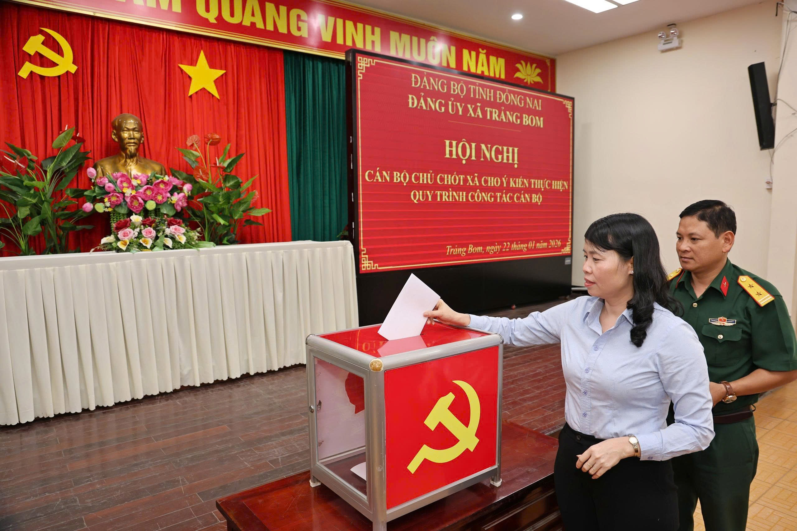 Tại hội nghị, đồng chí Nguyễn Thị Cúc – Uỷ viên Ban Thường vụ Đảng uỷ, Trưởng Ban Xây dựng Đảng đã thông qua tờ trình về giới thiệu nhân sự ứng cử chức danh lãnh đạo HĐND, UBND xã Trảng Bom nhiệm kỳ 2026-2031; dự thảo kết luận nhận xét, đánh giá của Ban Thường vụ Đảng uỷ đối với 05 đồng chí dự kiến tái cử chức danh lãnh đạo HĐND, UBND xã Trảng Bom nhiệm kỳ 2026-2031.